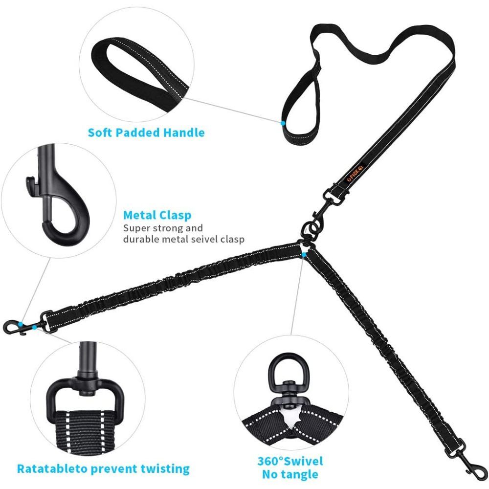 The soft padded handle is comfortable, even after a long walk, and the heavy-duty tangle-free swivel leash attachment ensures that your dogs won't get tangled up.
