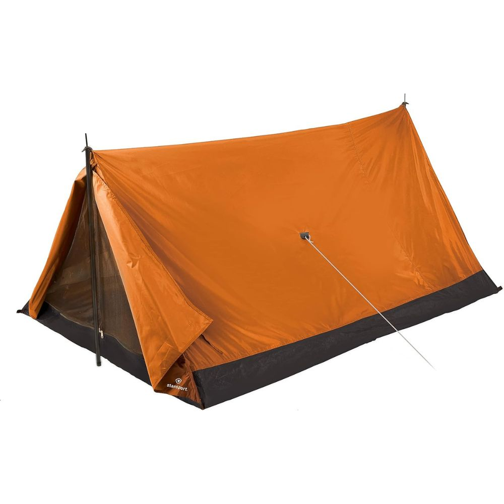 If you need a perfectly functional and reliable shelter for your outdoor adventures, the Stansport Scout 2-Person Tent is a classic choice that stands the ordeal of time. This backpacking tent follows the classic A-frame design, a tried-and-true structure that has proven itself in countless outdoor scenarios.